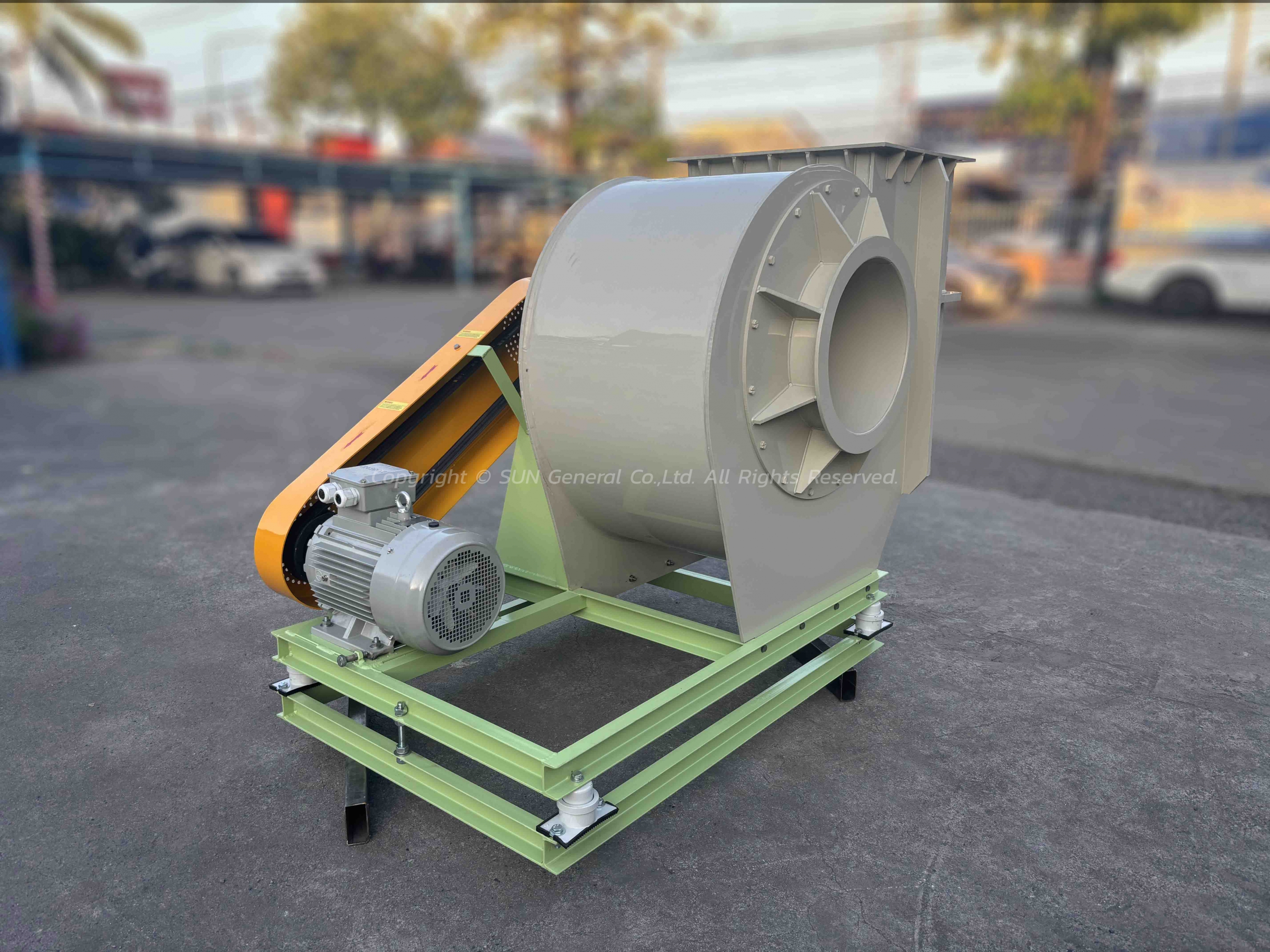 พัดลมโบลเวอร์หรือพัดลมแรงเหวี่ยง ชนิดพลาสติก PP/PVC เป็นพัดลมที่มีคุณสมบัติที่แข็งแรง ทนทาน และมีประสิทธิภาพสูง โดยพัดลมนี้ถูกออกแบบให้เป็นพัดลมที่กะทัดรัด โดยการใช้แรงดันและการเชื่อมด้วยความร้อน เพื่อทำให้มีความคงทนและแข็งแรง น้ำหนักเบา ติดตั้งได้ง่าย และมีเสียงเบาและการสั่นสะเทือนต่ำ